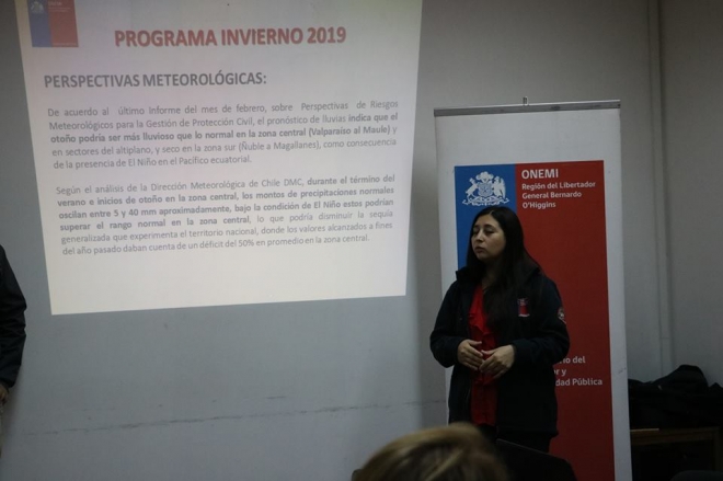 En la instancia, convocada por el gobernador Yamil Ethit, la Directora Regional de Onemi Alejandra Riquelme expuso a los encargados de emergencias de los 10 municipios de la provincia de Colchagua, los detalles del plan elaborado para este año, afinando el ejecutado en 2018 y revisando en detalle las labores de preparación y mitigación de puntos críticos en la provincia, que deben realizar las compañías de servicios.